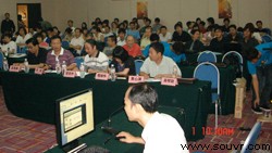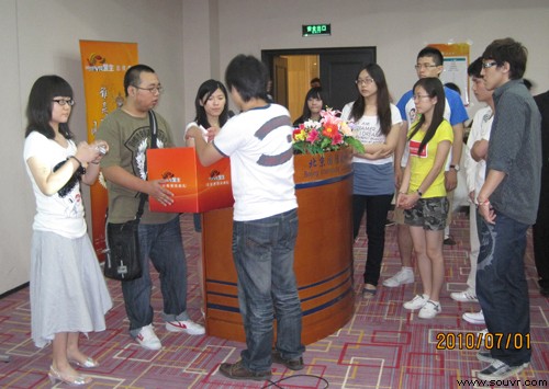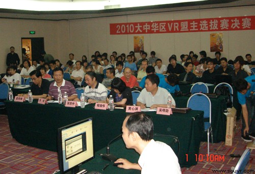 7月1日,2010'大中华区VR盟主选拔赛总决赛在北京国际会议中心拉开战幕,来自两岸三地的25组选手各怀绝技,一场现代版“华山论剑”精彩上演,下面我将带大家一起体验下决赛现场气氛。 决赛开始前,评委、选手、嘉宾都已各就各位为决赛做最后准备。 为公平起见,决赛开始前所有选手依次进行抽签,以决定上台演讲的先后顺序。 每个选手组都要选出一名代表,代表自己团队上台演讲、演示作品并为大家介绍作品的相关操作、作品背景和内容。 评委组老师为选手作品作评价,评委对参赛选手的美术功底做出了肯定,同时也提出了作品的不足之处并给出修给建议。 选手作品展示