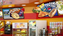 Exceptional 3D数字标牌适合安装在便利商店中使用,能够为客户营造出超凡的购物环境。三维立体图像可以更好地宣传店内的新产品或主打商品,精美逼真的画面更让顾客驻足流连。数字标牌可以同时播放立体图像和平面内容,比如,屏幕的一侧播放比萨饼、饮料广告,而另一侧同时播放天气预报和国内外新闻。另外,商家还可以根据时段自由选择播放内容,例如,早晨可以透过显示器看到冒着热气的咖啡,而到了中午则可以切换成推荐的三明治。