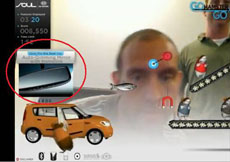 增强现实运用再加大了版图,FACEBOOK也玩的到!KIA汽车在FACEBOOK上设置了一个应用程序,让潜在客户可以透过这个目前最热门的网络社群以及应用程序轻松了解汽车内装、颜色还有配备。游戏运用脸部辨识技术,在玩家的额头上装置一根虚拟钓竿,玩家要运用这根钓竿把输送带上的仓鼠钓到一旁的KIA SOUL让仓鼠上车,一面还要躲避鱼的攻击! 潜在客户可一目了然KIA SOUL如仓鼠般可爱的外型以及灵活的行动!