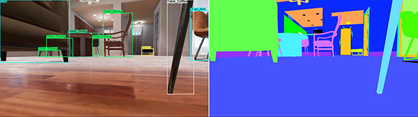 智能扫地机器人的视角模拟。左图:2D选框,右图:用途划分