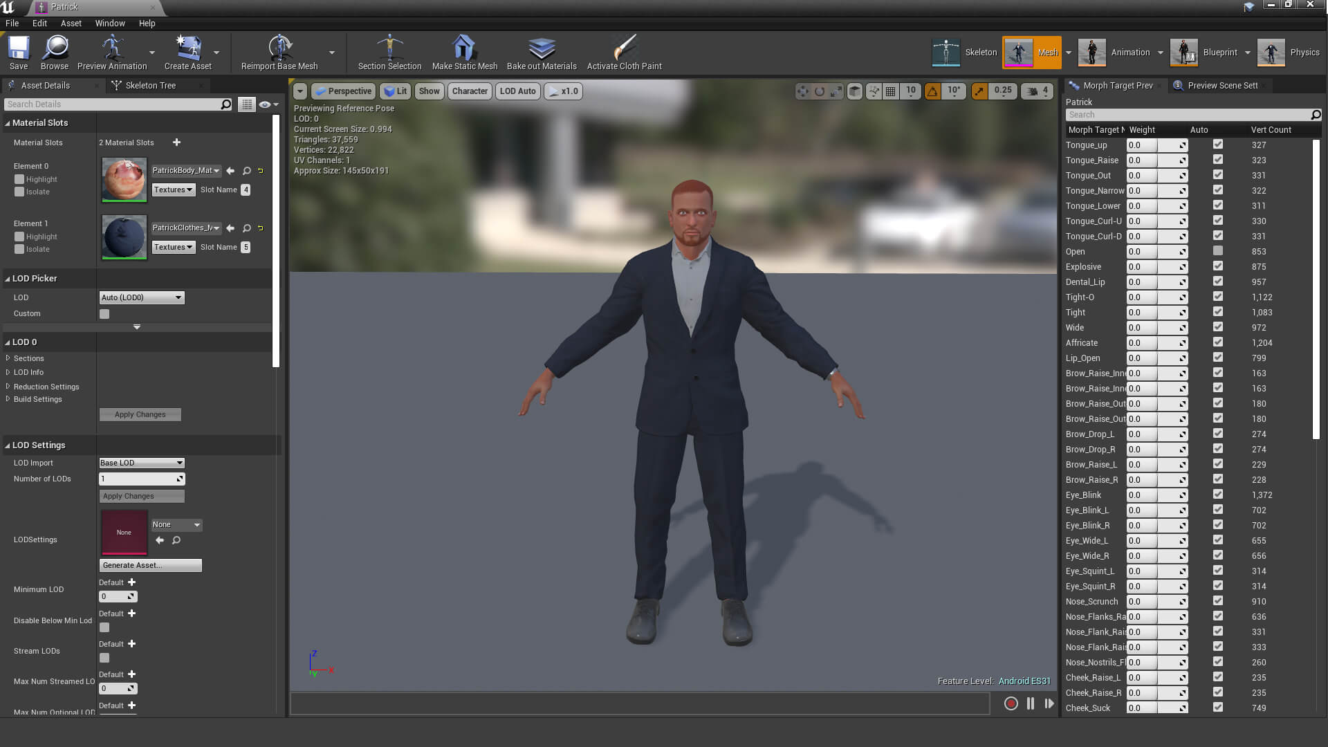 团队最初使用面部捕捉来生成角色面部的特定表情,但他们最终还是使用了关键帧动画,并辅以在所有角色之间共享的通用骨架。借助这个面部表情库,VR Perspectives在虚幻引擎Sequencer中开发出了一套快速设计情境原型的流程。“我们将表情参数化。”Mickey说,“你可以选择需要的情感,然后给它馈送动画,角色就会按照我们的预期做出表情。这挺酷的。”