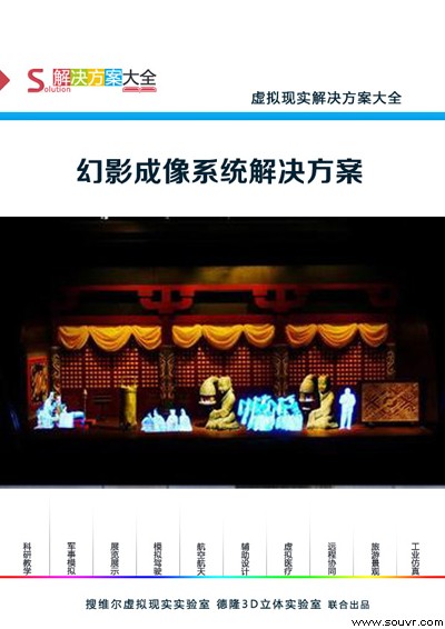 幻影成像系统也称虚拟成像是基于“实景造型”和“幻影”的光学成像结合,将所拍摄的影像(人、物)投射到布景箱中的主体模型景观中,演示故事的发展过程。绘声绘色,虚幻莫测,非常直观,给人留下较深的印象。由立体模型场景、造型灯光系统、光学成像系统(应用幻影成像膜作为成像介质)、影视播放系统、计算机多媒体系统、音响系统及控制系统组成,可以实现大的场景、复杂的生产流水线、大型产品等的逼真展示。